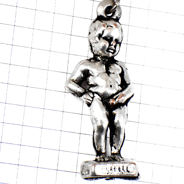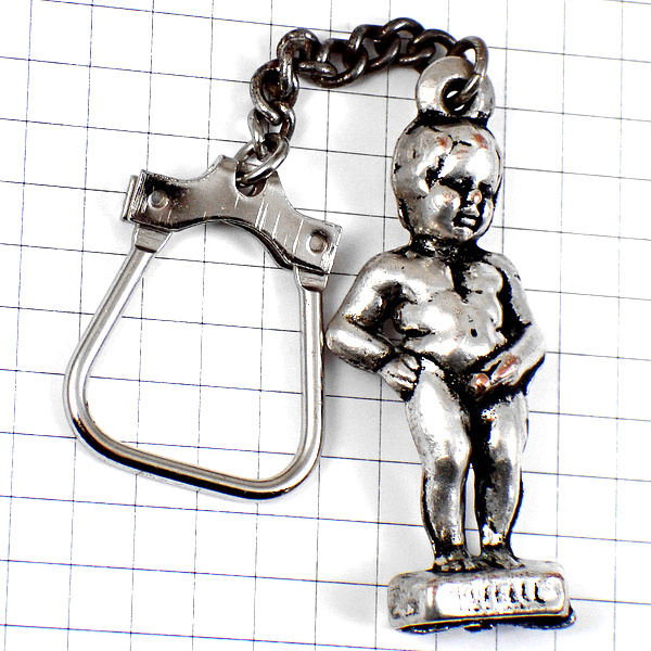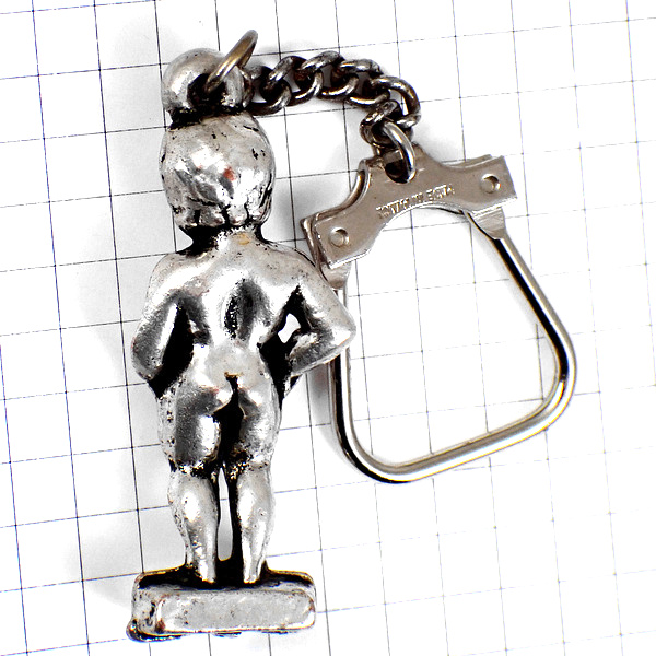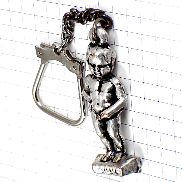 キーホルダー・ベルギー噴水の小便小僧シルバー銀色 MANNEKEN BRUXELLE BELGIUM