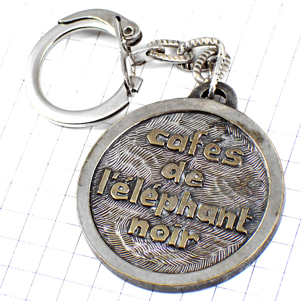 キーホルダー・カフェドレレファン象のコーヒー珈琲シルバー銀色 CAFES-DE-L-ELEPHANT-NOIR FRANCE