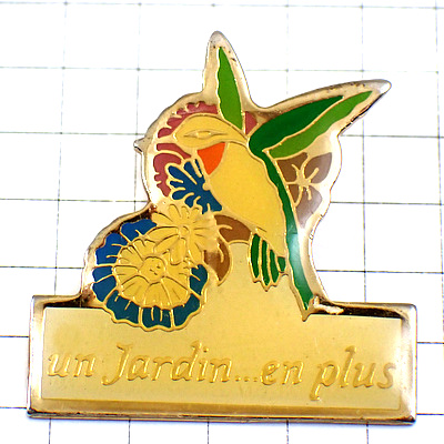 ピンバッジ・みどり色の翼の小鳥と花 COLIBRI