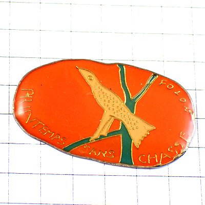 ピンバッジ・ジャン=ミッシェル・フォロン画FOLONの鳥の絵画 PRINTEMPS-SANS-CHASSE JEAN-MICHEL-FOLON FRANCE