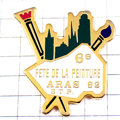 ピンバッジ・高層ビルと絵筆ペイント絵画の祭典 PALETTE ARAS FRANCE
