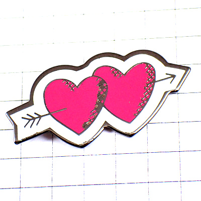 ピンバッジ・射抜かれたピンク色のハート2つ矢バレンタイン HEART ARROW FRANCE