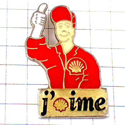 ピンバッジ・ガソリンスタンド給油スタッフ赤い制服シェル石油大好きスタッフ SHELL ENGLAND