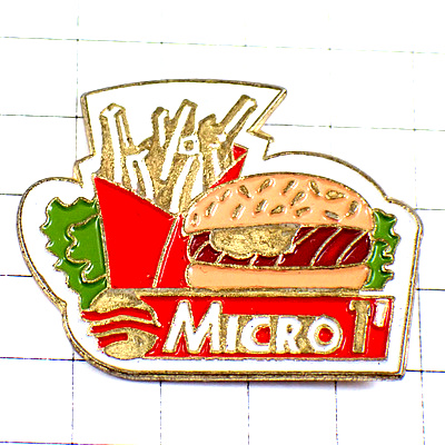 ピンバッジ・ハンバーガーとポテトとサラダ食事ファーストフード HAMBURGER FRITE FRIES MICRO