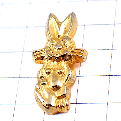ピンバッジ・復活祭のウサギ兎ゴールド金色