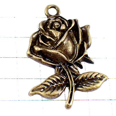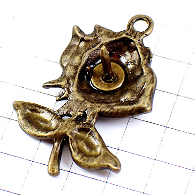 ピンバッジ・ローズ薔薇バラの花ブロンズ色アンティーク真鍮色