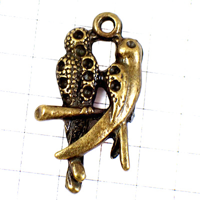 ピンバッジ・小鳥たちブロンズ色アンティーク真鍮色