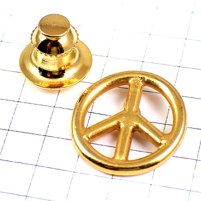 ピンバッジ・ピースマーク金色ゴールド平和 PEACE