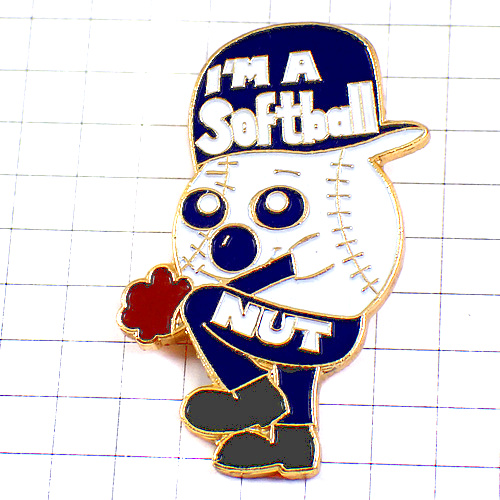 ピンバッジ・僕はソフトボール青い野球帽NUT白い球くん