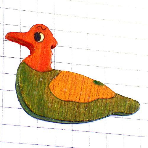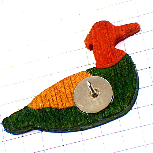 ピンバッジ・カモ鴨トリ木製の鳥
