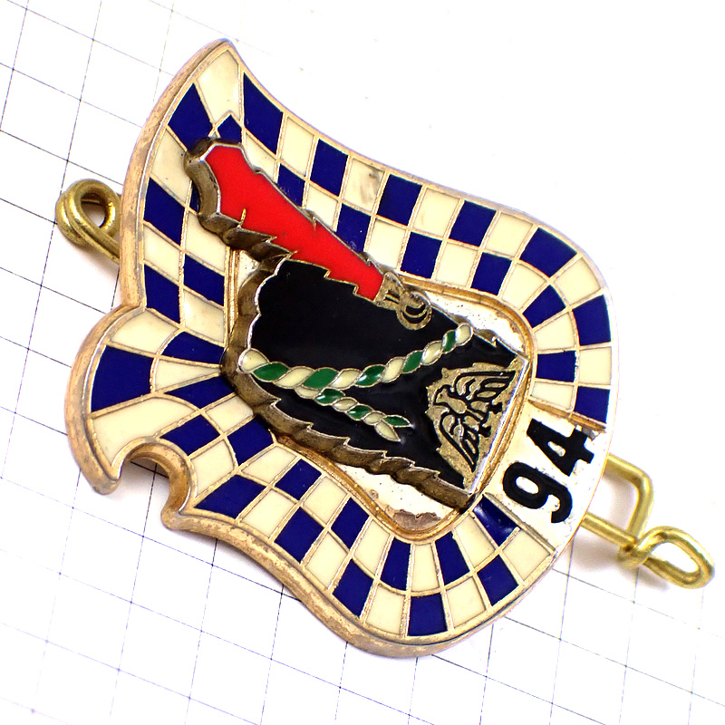 ブローチ・第94歩兵連隊ミリタリー黒い帽子市松模様フランス軍