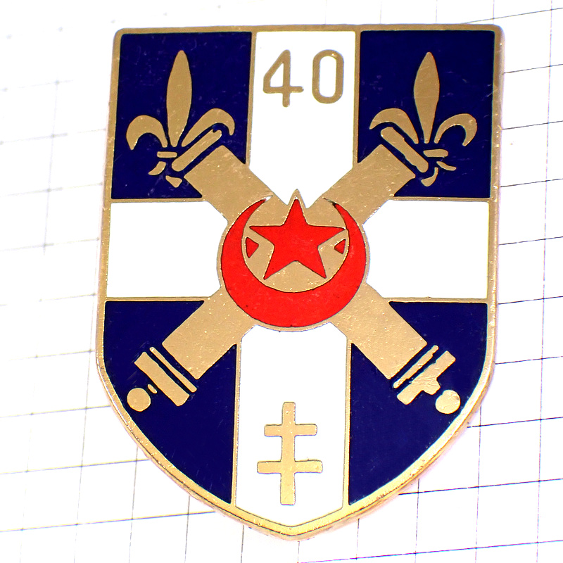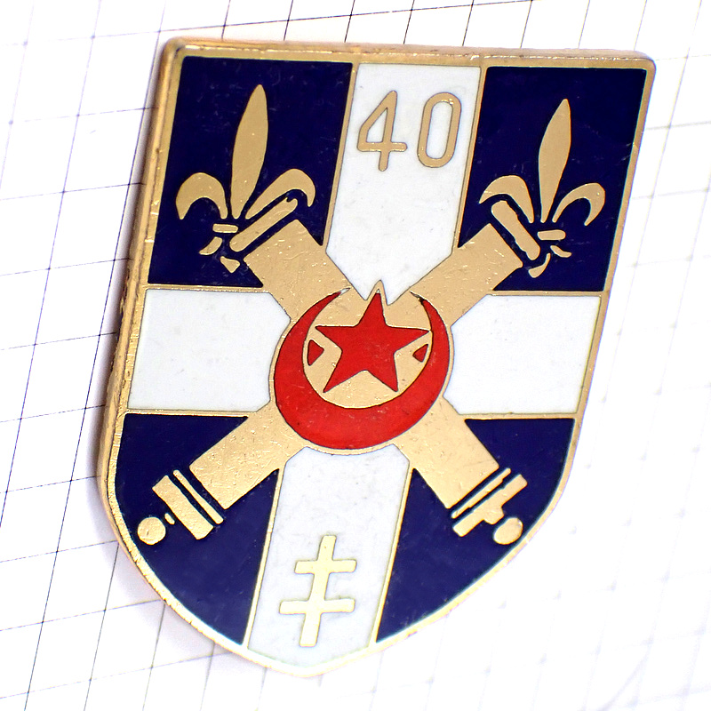 ブローチ・武器や百合の紋章ロレーヌの十字や星三日月第40砲兵連隊フランス軍 40E-REGIMENT-D-ARTILLERIE 40RA FRANCE