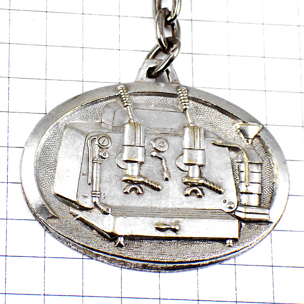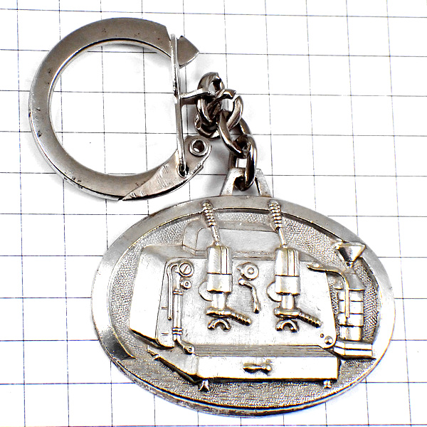 キーホルダー・エスプレッソコーヒーマシン珈琲機シルバー銀色