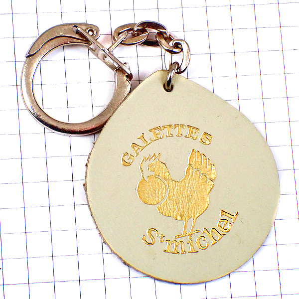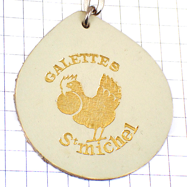 キーホルダー・ニワトリ雄鶏印ガレットお菓子サンミッシェル革製レザー