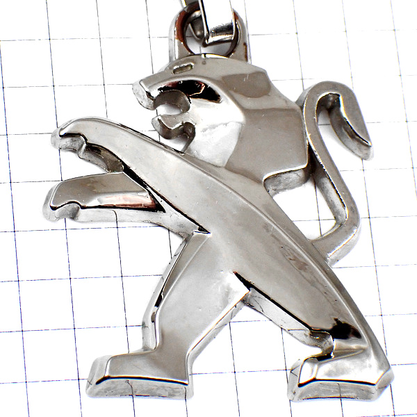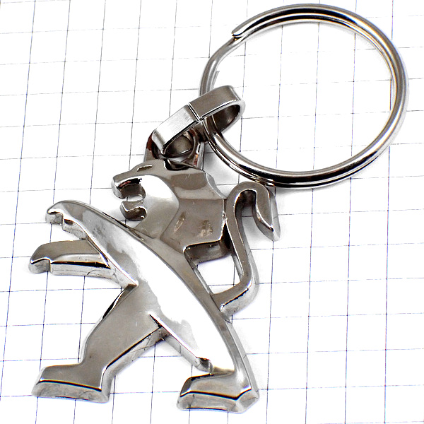 キーホルダー・プジョー車ライオンのロゴ銀色シルバーエンブレム
