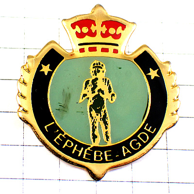 ピンバッジ・アグド赤い王冠と若者の彫像の紋章 AGDE FRANCE