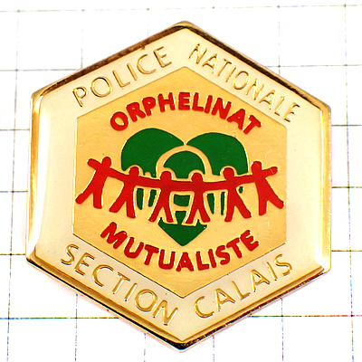 ピンバッジ・ハート手をつなぐ人ポリス警察官の遺児 ORPHELINAT FRANCE