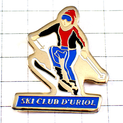 ピンバッジ・スキーヤー青いパンツ赤い帽子トリコロールカラースキークラブ