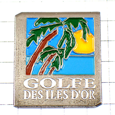 ピンバッジ・ヤシの木と太陽イルドールの湾 GOLFE-DES-ILES-D-OR FRANCE