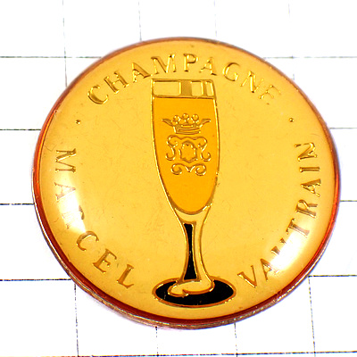 ピンバッジ・シャンパーニュ酒シャンパン葡萄酒グラス一杯