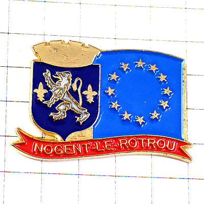 ピンバッジ・ノジャンのライオンと百合の紋章スター星の欧州旗EU欧州連合ヨーロッパ NOGENT-LE-ROTROU FRANCE