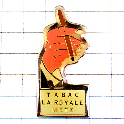 ピンバッジ・タバコ細い煙草をはさむ手