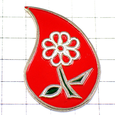 ピンバッジ・献血のハートの花しずく血液の葉っぱ