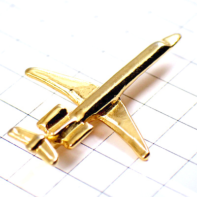 ピンバッジ・金色飛行機ゴールド航空機立体型
