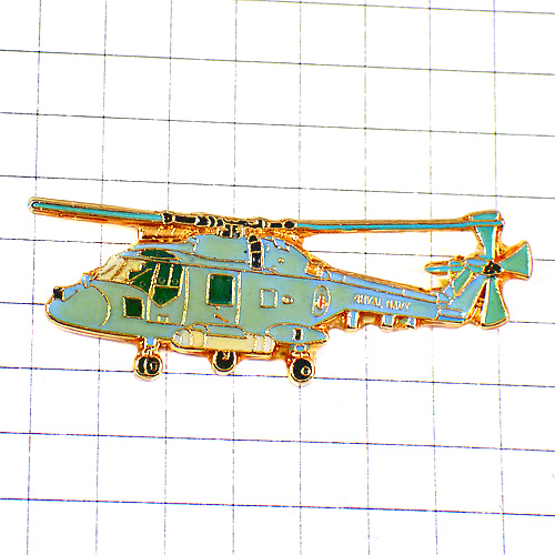 ピンバッジ・ヘリコプター水色ブルー青い航空機 ROYAL-NAVY ENGLAND