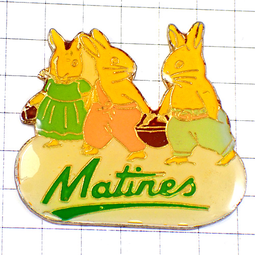 ピンバッジ・ドレスや洋服を着たウサギたち兎