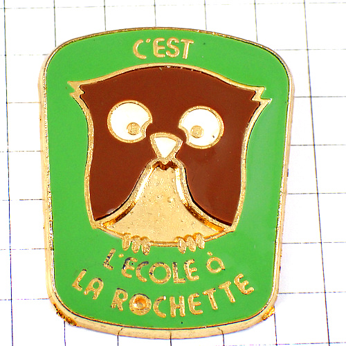ピンバッジ・学校フクロウ梟ミミズク緑