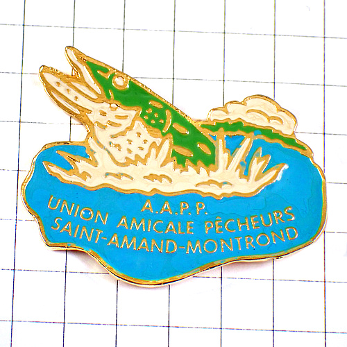 ピンバッジ・水面から飛び出す魚フィッシング釣り AAPP BROCHET FRANCE