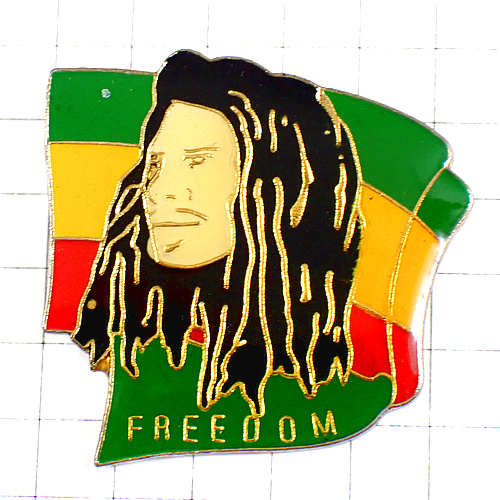 ピンバッジ・ボブマーレー歌手ジャマイカ自由レゲエ音楽 FREEDOM BOB-MARLEY RASTA FLAG