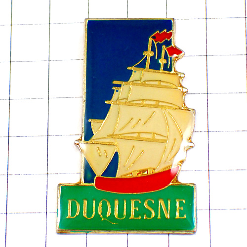 ピンバッジ・デュケーヌ白い帆船お酒ボート DUQUESNE RHUM FRANCE
