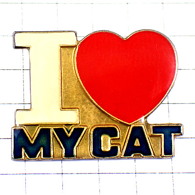 ピンバッジ・猫ネコ大好きアイラブキャッツ真っ赤なハート型 I-LOVE-MY-CAT