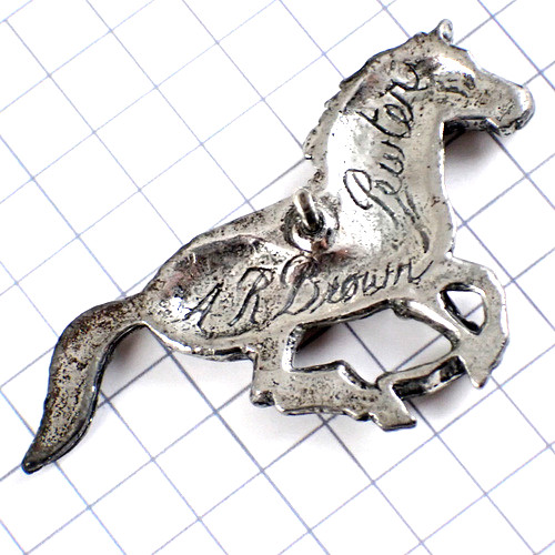 ピンバッジ・駆ける馬ウマうまシルバー銀色 PEWTER SILVER A-R-BROWN HORSE