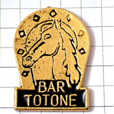 ピンバッジ・黒い馬に乗馬ローリエ月桂樹
