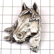 ピンバッジ・勝者?たてがみの長い馬と蹄鉄