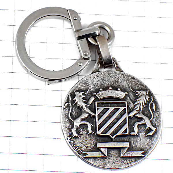 キーホルダー・ライオン2頭のエンブレム紋章シルバー銀色オージス社 EVERY-WEATHER AUGIS SILVER FRANCE