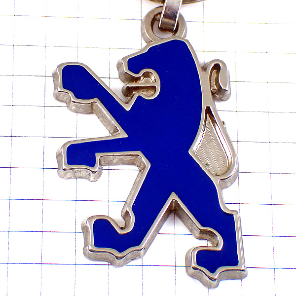 キーホルダー・プジョー車ライオン紺色ロゴ銀色シルバーエンブレム PEUGEOT FRANCE