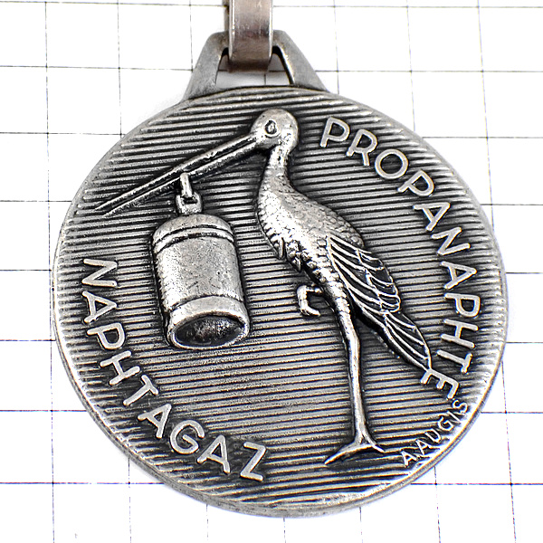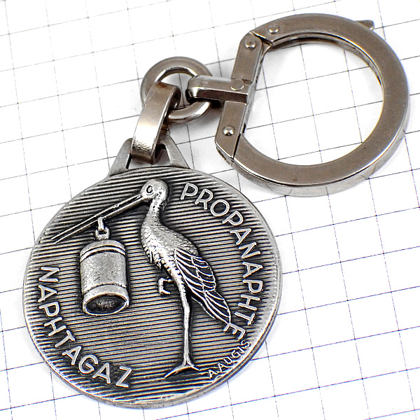 キーホルダー・コウノトリ鳥ガスタンク銀色シルバー