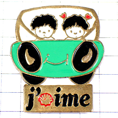 ピンバッジ・ドライブする二人カップル緑色の車シェル石油 SHELL ENGLAND