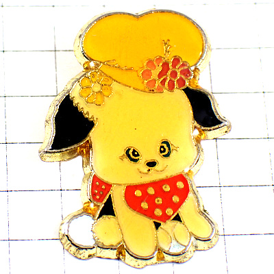 ピンバッジ・黄色い帽子の犬レトロ調ボール遊び
