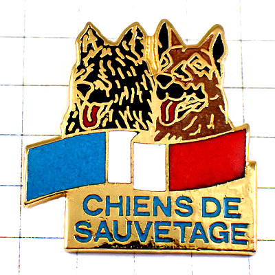 ピンバッジ・救助犬とフランス国旗トリコロール SAUVETAGE RESCUE DOG FRANCE