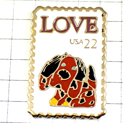 ピンバッジ・茶色い犬アメリカ郵便局の切手型LOVEラブ