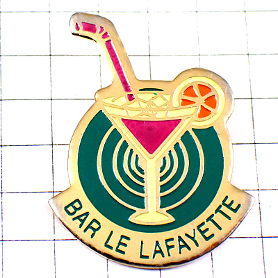 ピンバッジ・ピンク色のカクテル酒ストローレモン