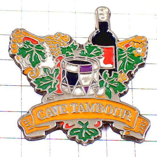 ピンバッジ・ワインぶどう葡萄酒ボトル瓶ブドウ葉っぱ