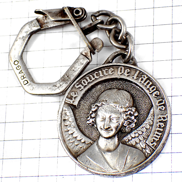 キーホルダー・ランスの天使シャンパーニュ酒シルバー銀色エンジェル CHAMPAGNE HENRI-ABELE REIMS FRANCE