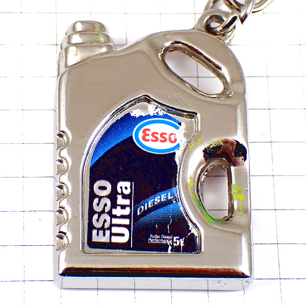 キーホルダー・エッソ石油のオイル缶シルバー銀色 ESSO