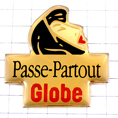 ピンバッジ・黒いスカーフ赤い唇の女の子 GLOBE MAGAZINE FRANCE